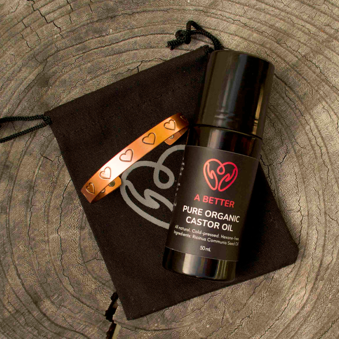 Featuring our best-selling Rose Quartz roller, combined with our beautiful Pure Copper Hearts design bracelet.