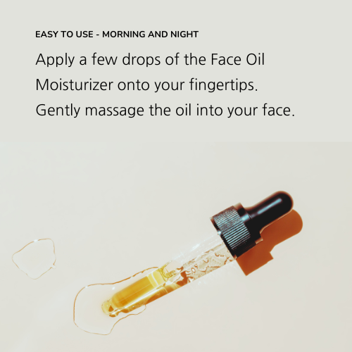 - Apply a few drops of the Face Oil Moisturiser onto your fingertips.