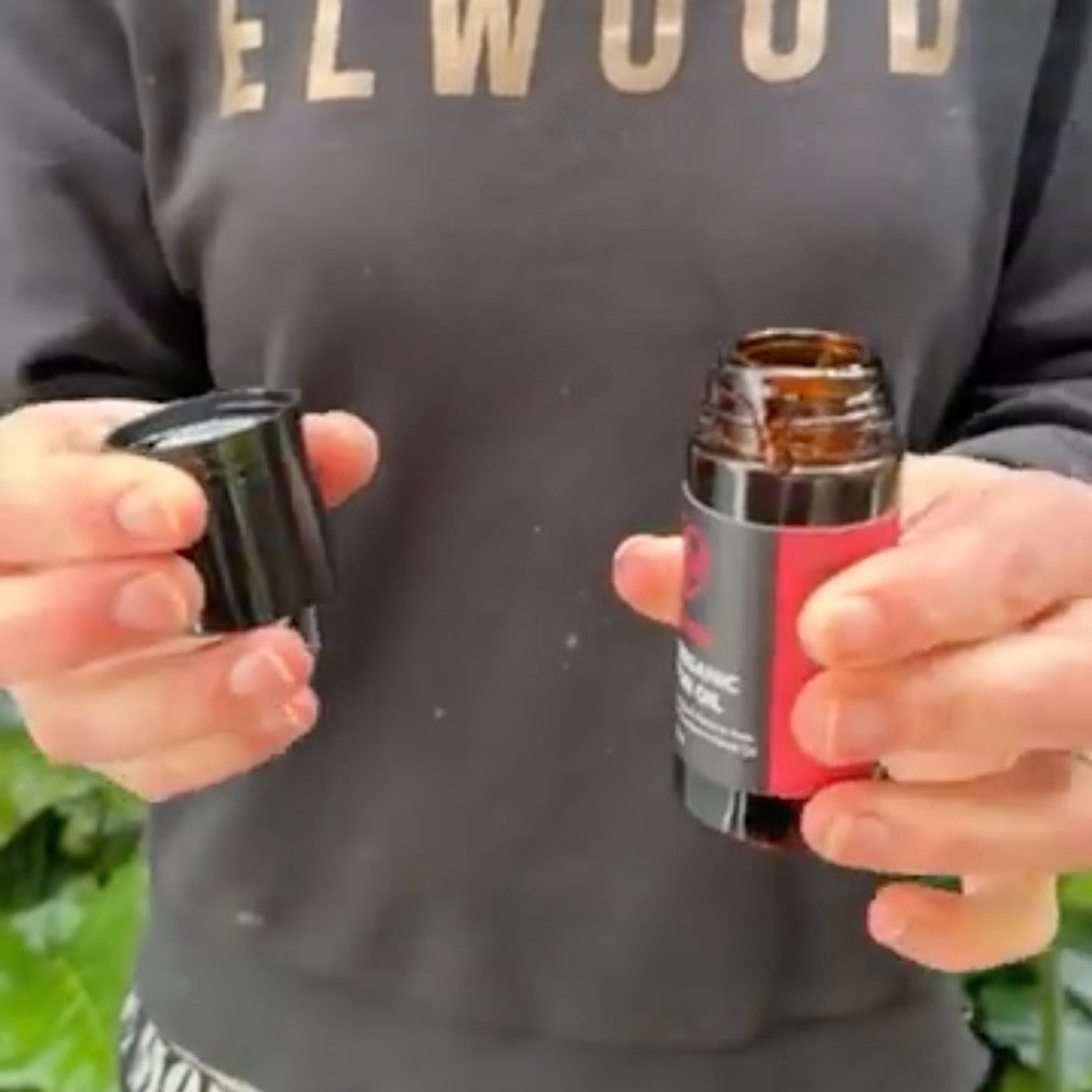 - Apply a small amount on damp skin, or use our Castor Oil Roll‑On to glide on a thin layer.
