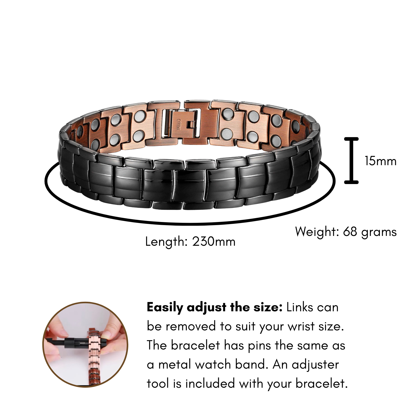 它不仅仅是一件配饰,更是时尚与健康的融合,将铜的潜在治疗特性与钕磁铁的强度相结合。